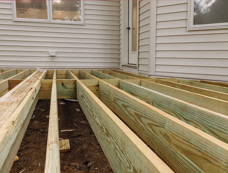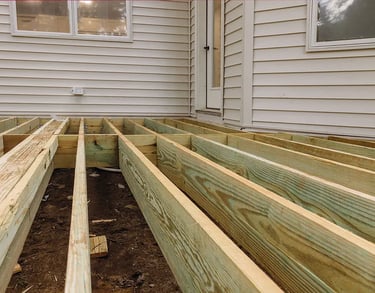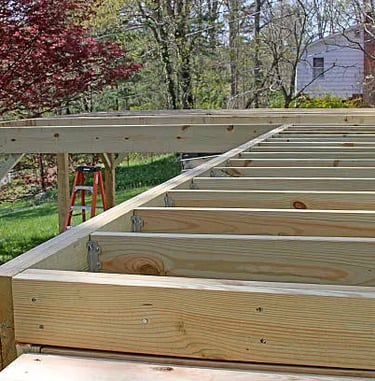 Professional wood framing and deck construction services, ensuring solid structural support and high-quality finishes for roofing and exterior projects.